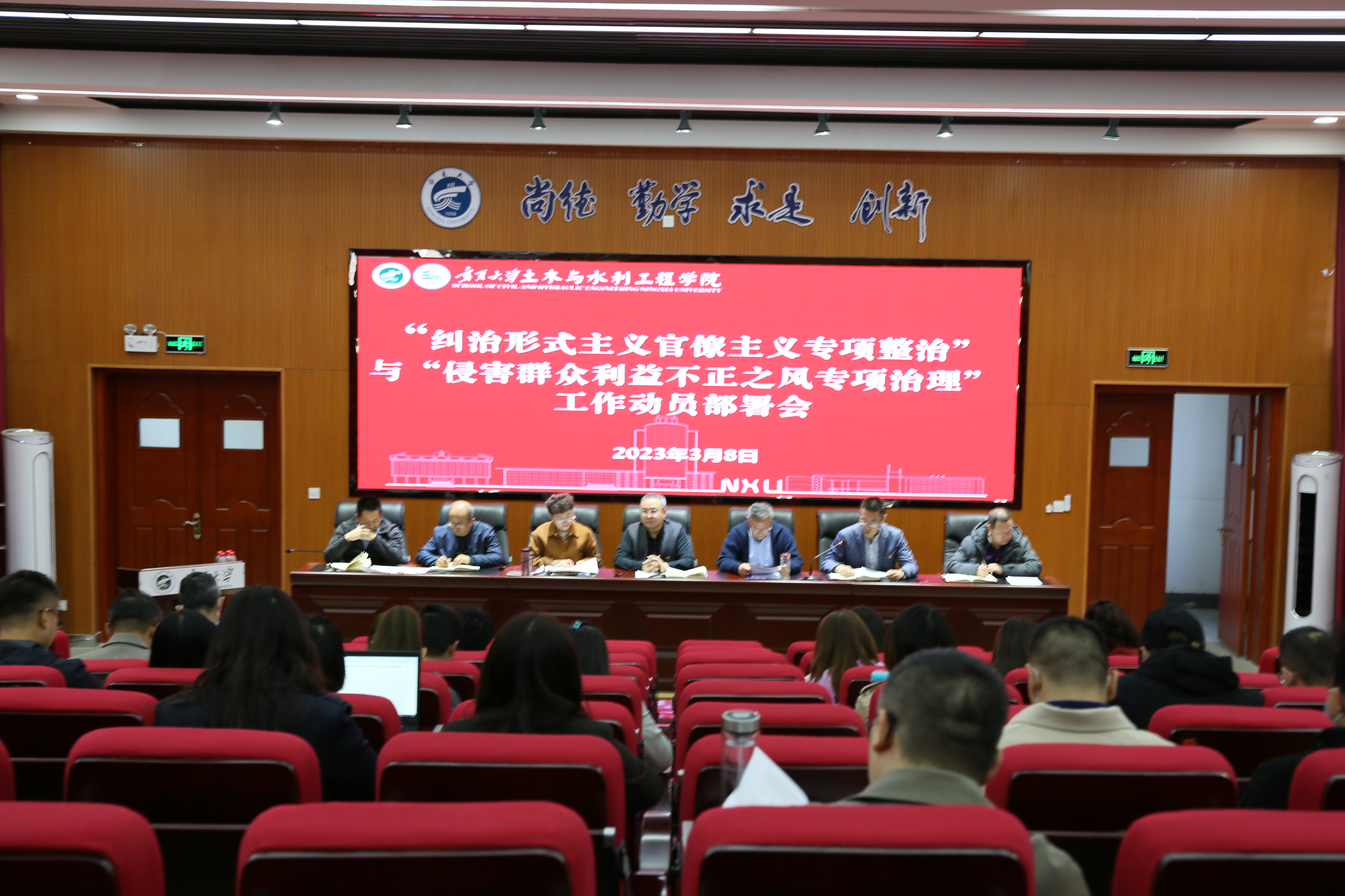 “纠治形式主义官僚主义专项整治”和“侵害群众利益不正之风专项治理”工作动员部署会议。学院领导、系、办、中心主任、支部书记以及所有行政人员参加,学院党委副书记苏宇静主持会议。