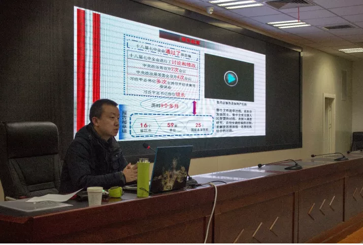 中国梦·民族梦·复兴梦为深入学习宣传党的十九大精神,全面贯彻习近平新时代中国特色社会主义思想,引领广大干部群众切实把思想和行动统一到党的十九大精神上来,把力量凝聚到实现党的十九大确定的各项目标上来,经校党委研究决定在全校师生中开展宣讲党的十九大精神活动�2017�11�20日晚,我校马克思主义学院副院长党锐锋老师在文萃校区L楼国防生之家为土木与水利工程学院16级本科生及全体研究生开展党的十九大精神宣讲活动�