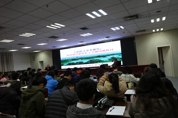 师生作题为“海绵城市建设若干关键问题探讨”学术报告。田军仓副校长主持报告会。