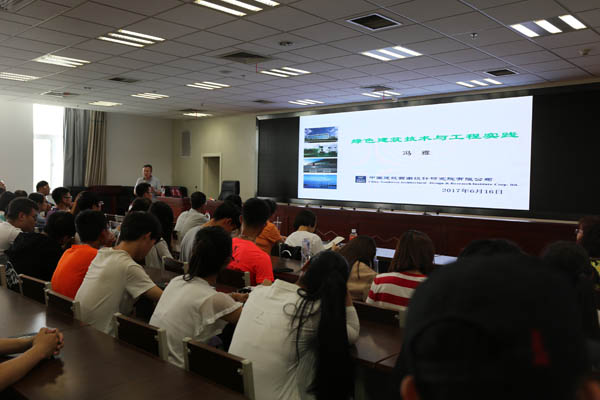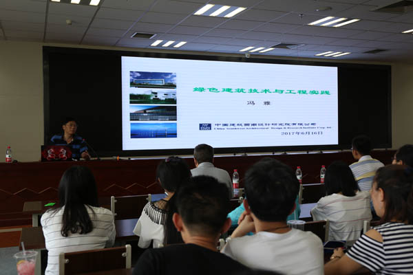 冯教授从历史发展角度和可持续发展观点介绍了绿色建筑的概念和绿色建筑技术,并结合承担的国际、国家、省部级十多项科研项目和工程实践案例,向师生展示了如何在实际项目中将适宜的绿色建筑技术应用在建筑设计和建筑施工中。