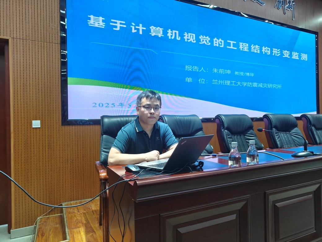 2025�5�29日下午,兰州理工大学朱前坤教授应邀为我院师生做题为“基于计算机视觉的工程结构变形监测”的学术讲座。学院师�100余人聆听了讲座,讲座由学院院长毛明杰教授主持�
